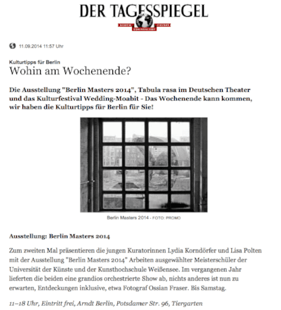 Tagesspiegel, Kulturtipps für Berlin, "Wohin am Wochenende?", September 11, 2014